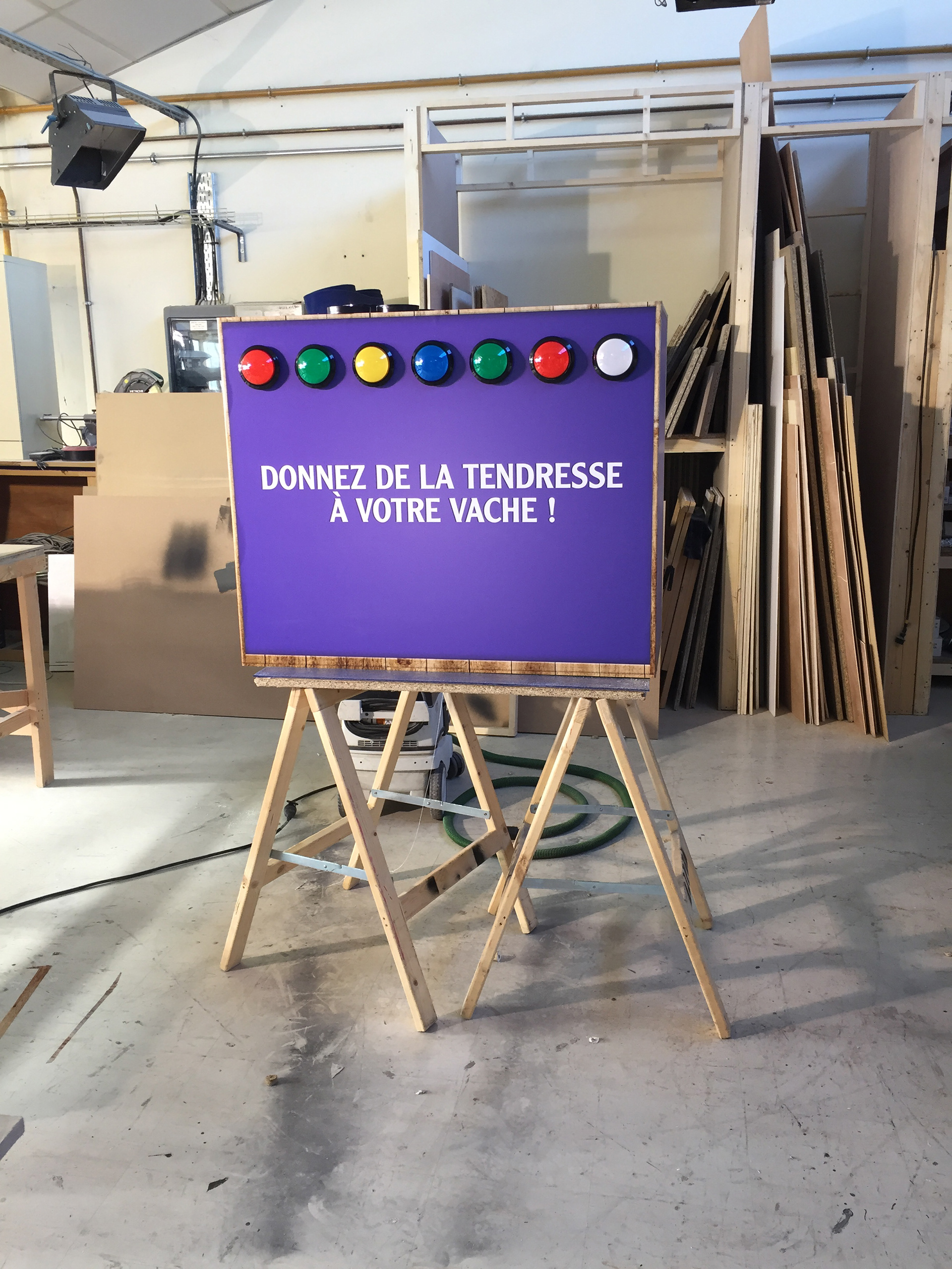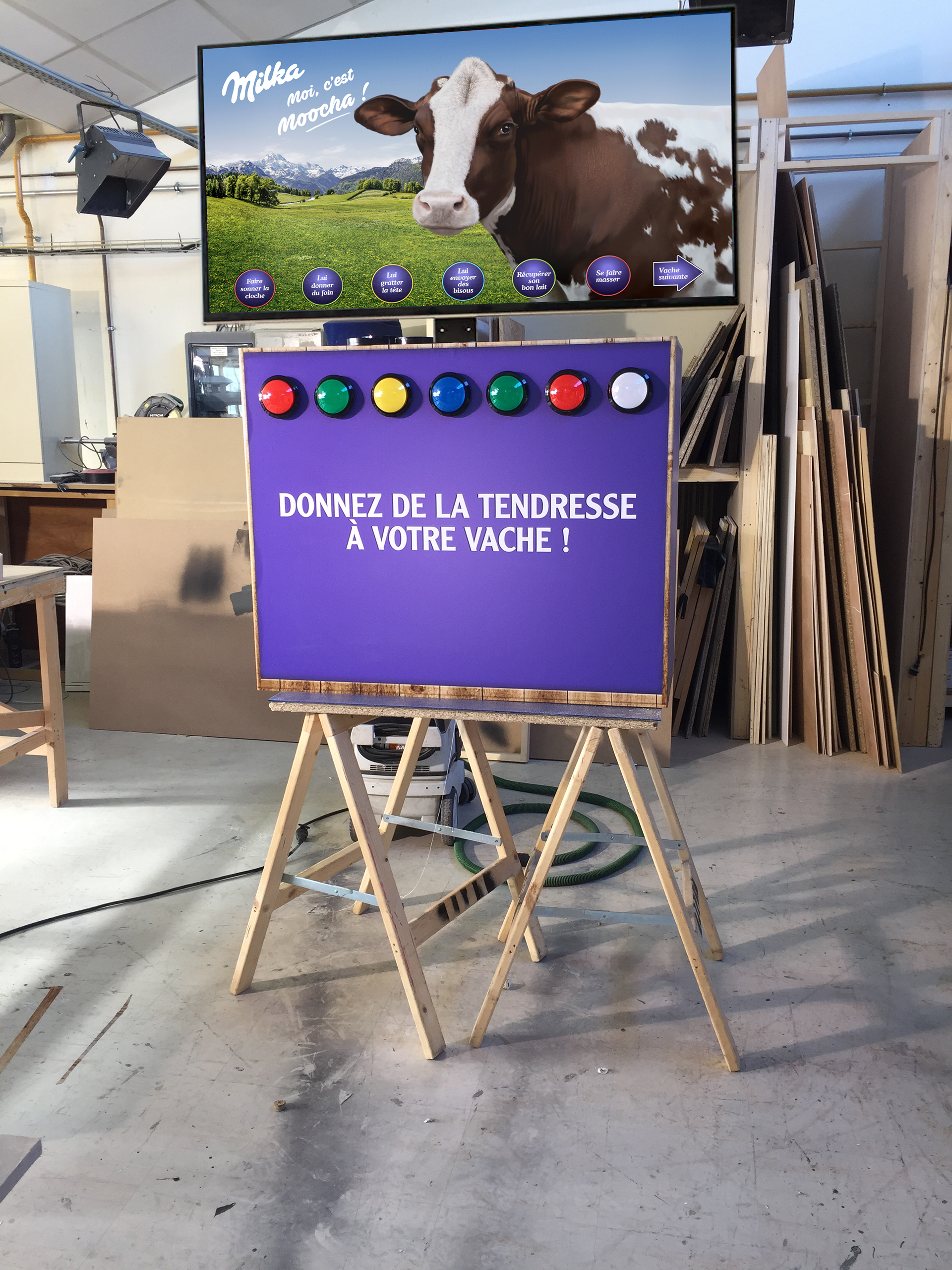 Press any of the 7 buttons to take care of your preferred Milka cow. Each button triggers a specific action - feed, cuddle or play