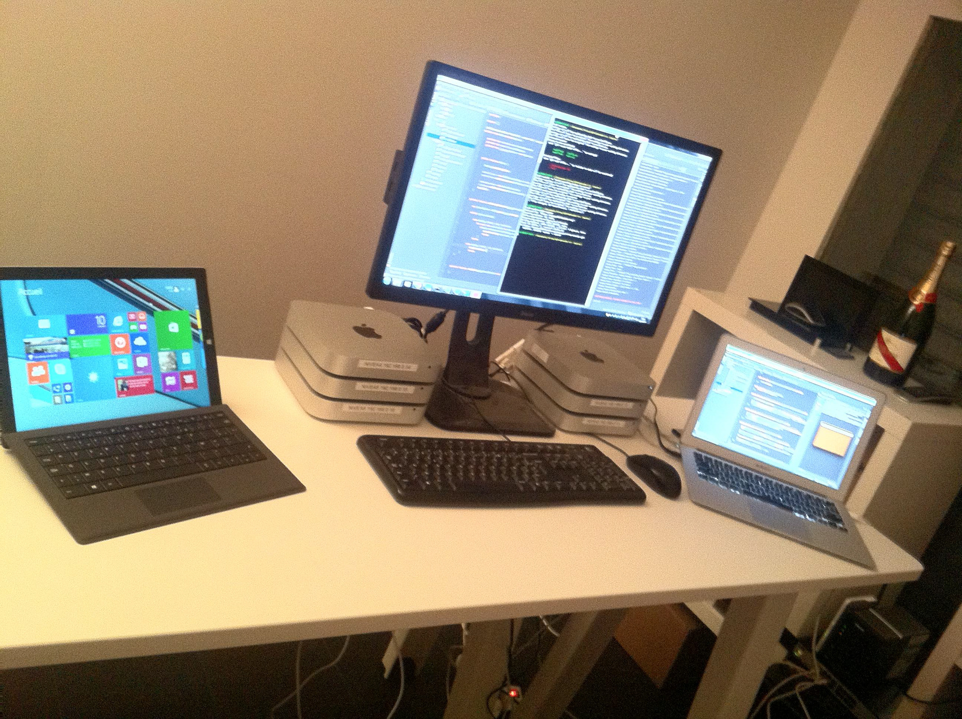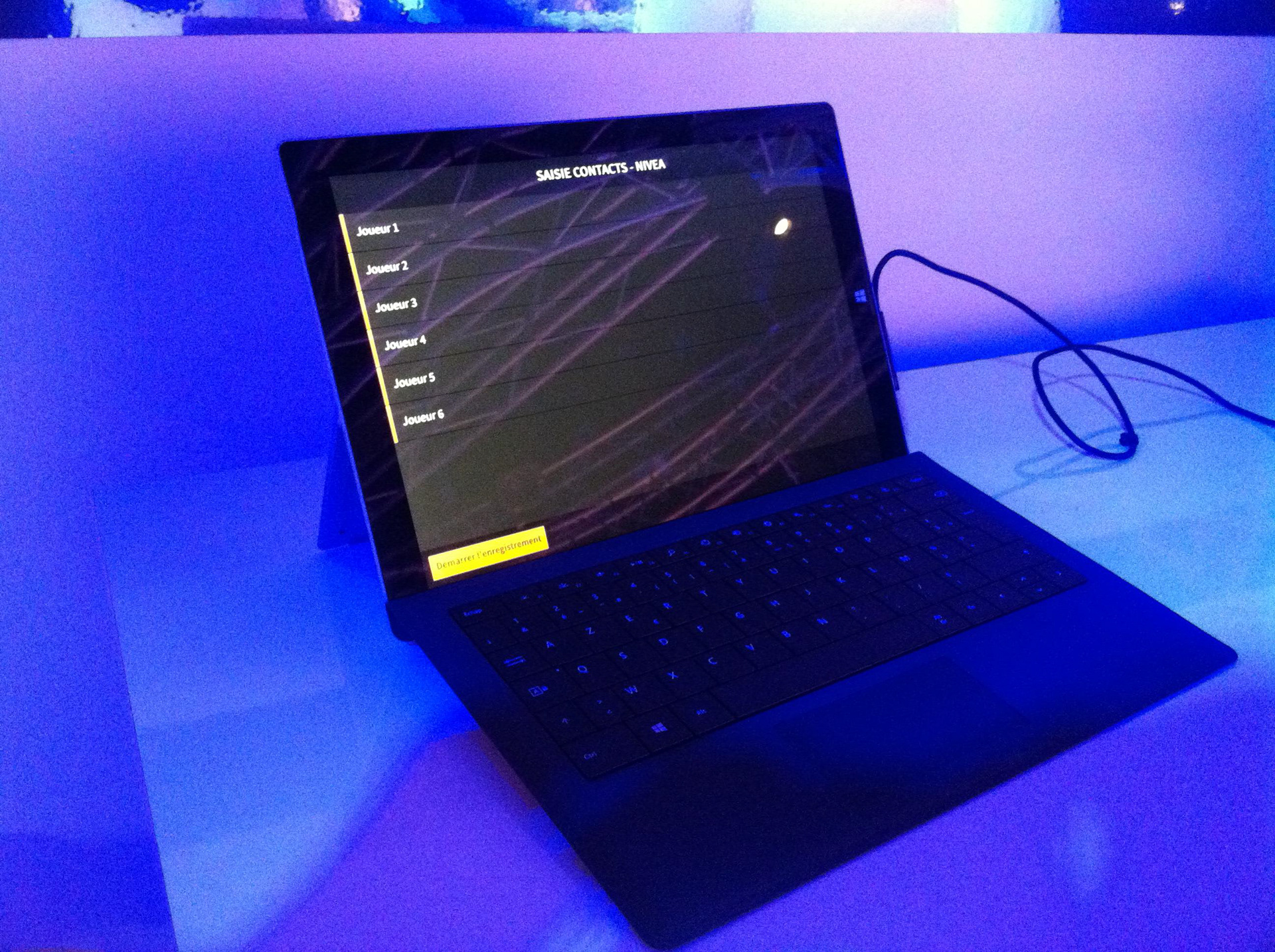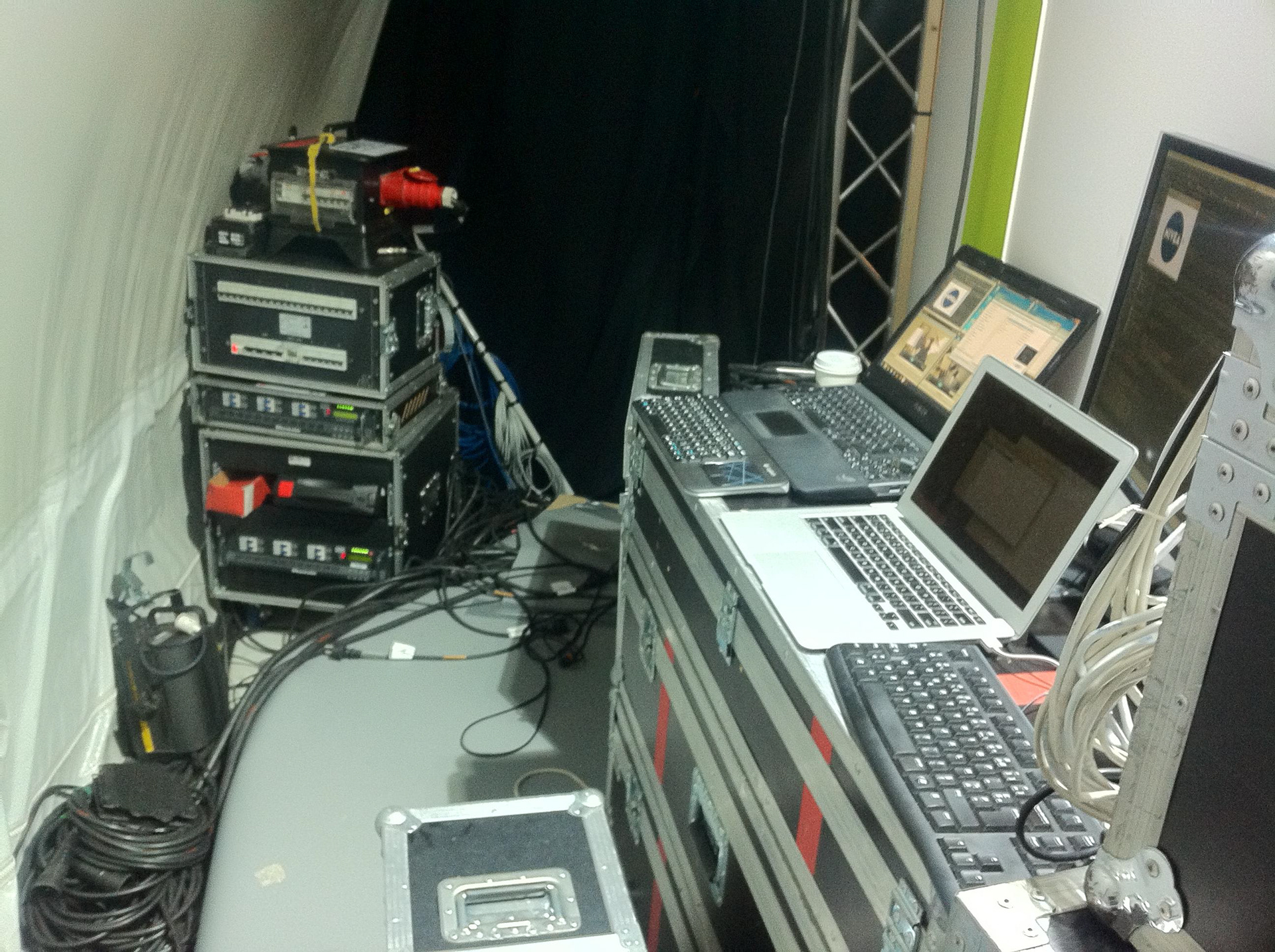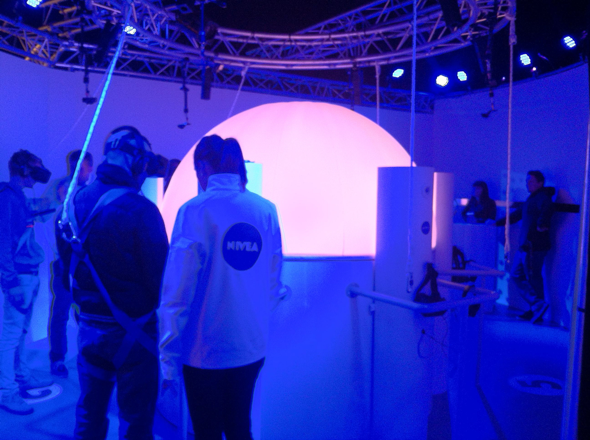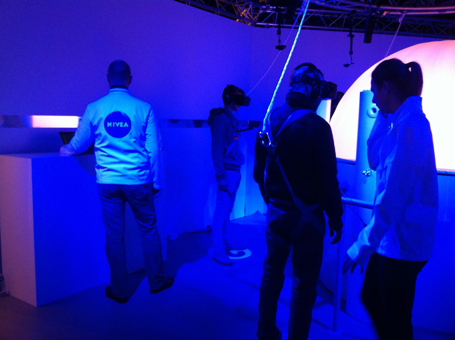 Users register for a VR session on a tablet, then their VR experience is recorded using an array of 6 cameras, with realtime transcoding/watermarking for web export. Once session is completed, the video link is sent by email so they can watch and share their moment