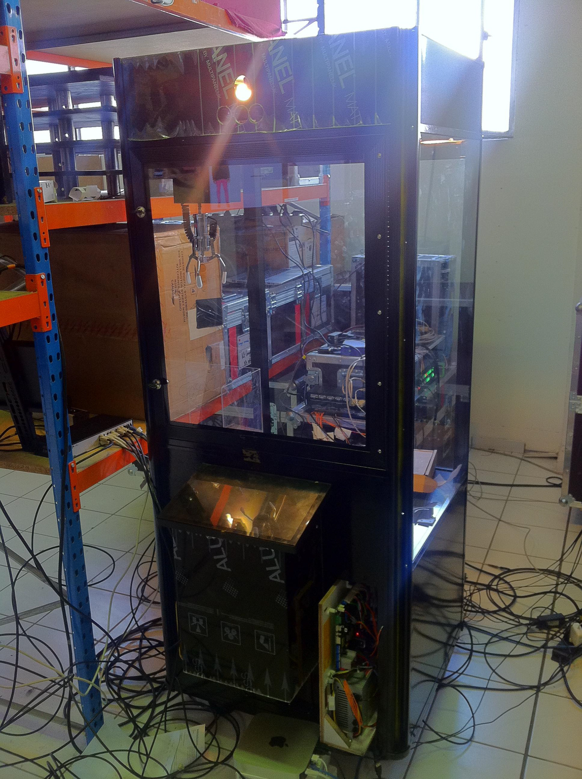 Because joysticks are so 1980', let's retrofit an old-school grabber machine with a kinect & touchscreen. Move your head to control the claw, open your mouth wide to grab your prize and trigger a photoshoot of your best wow-face.